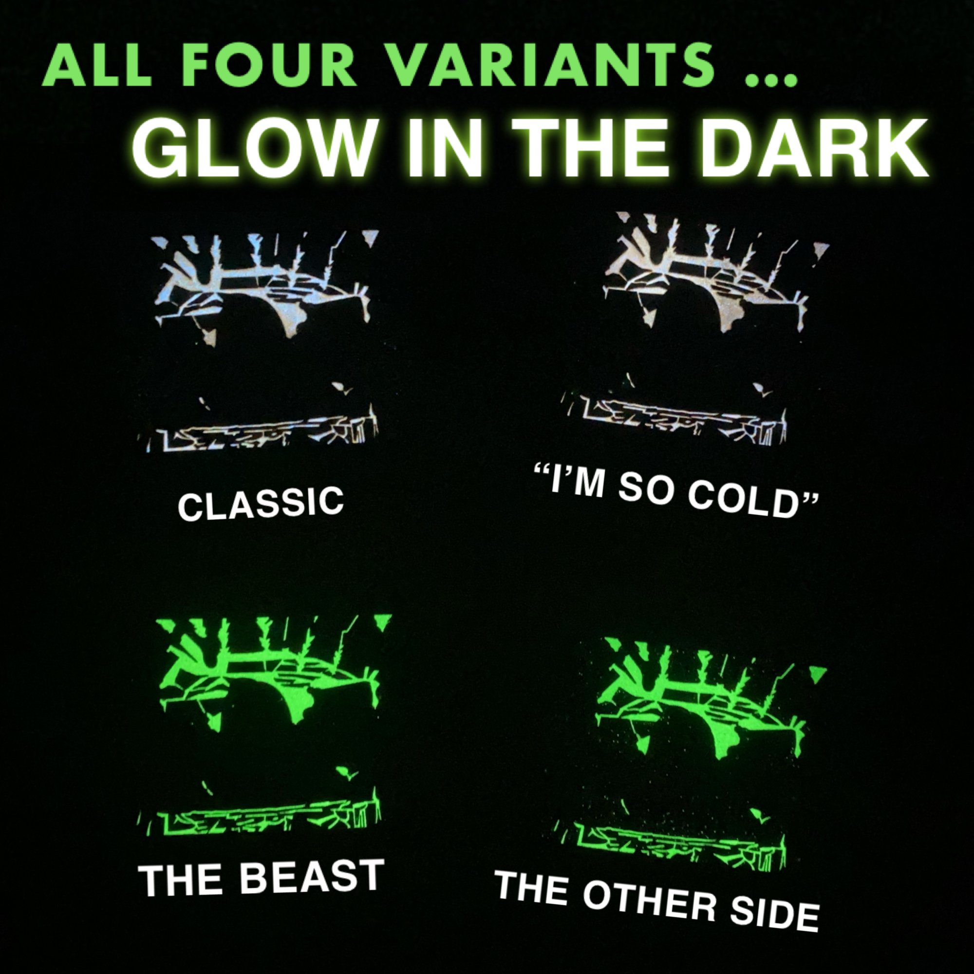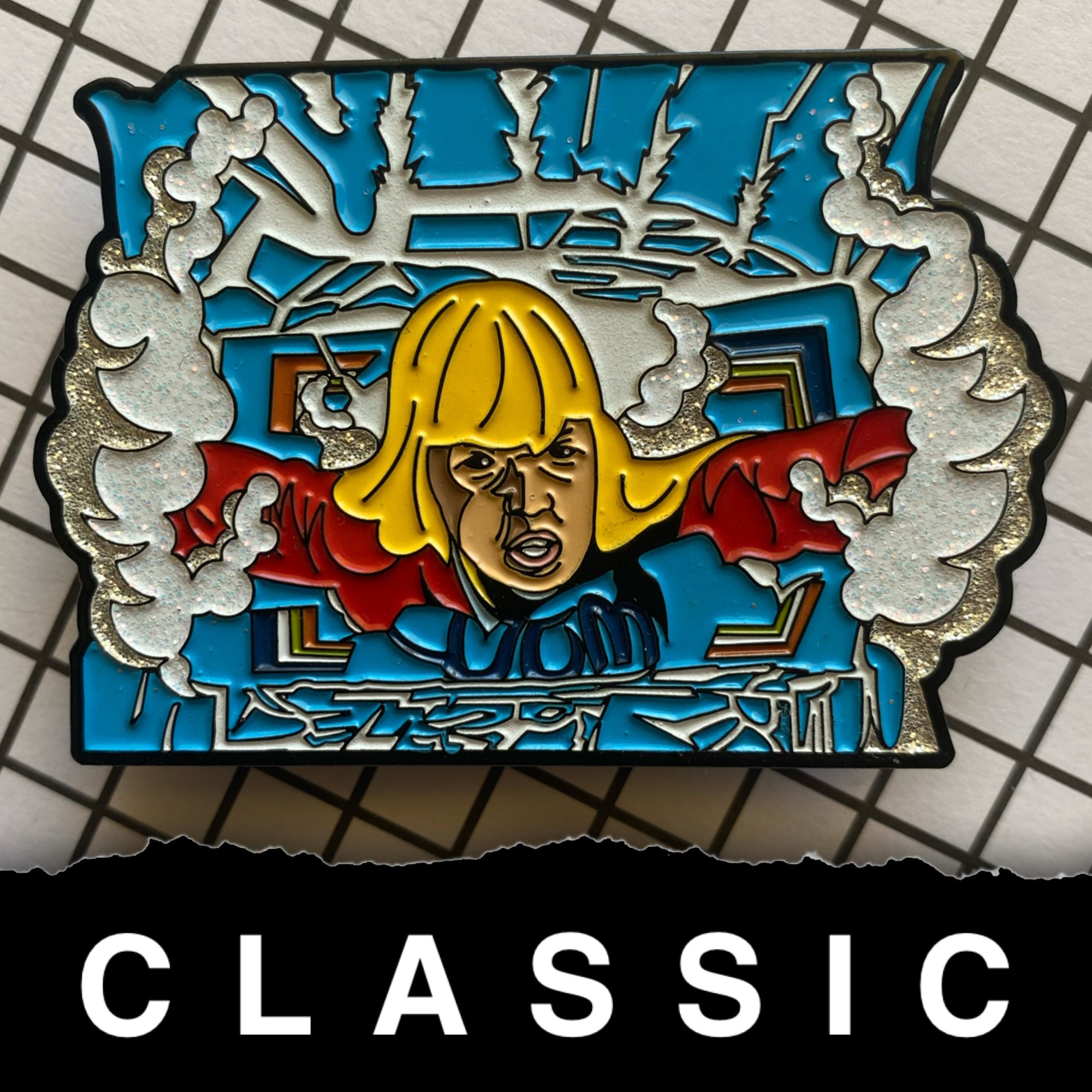 “I’M SO COLD”: Ghastly white glow with pearlescent accents over entire pin.