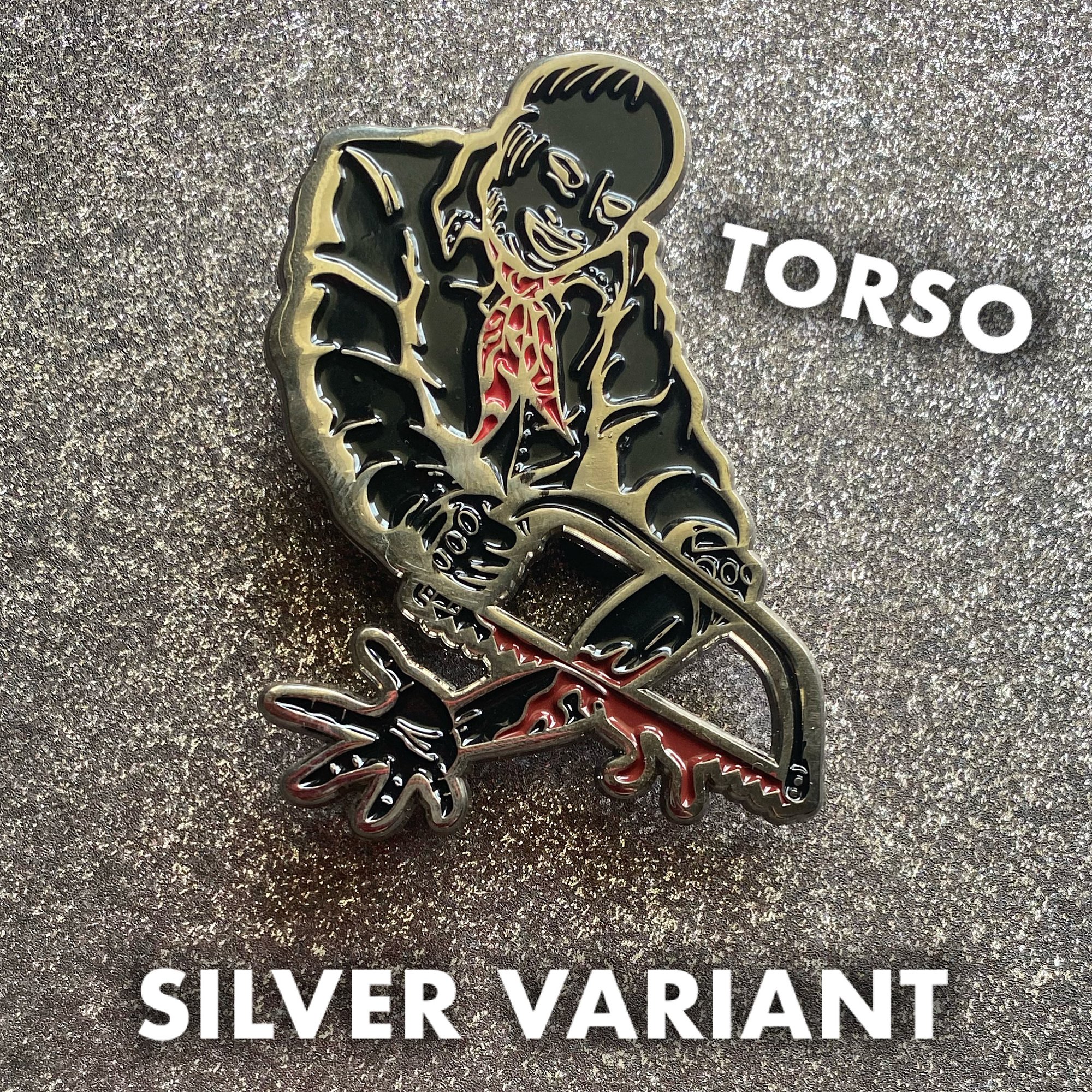 “Torso” pin is 2.65” tall, soft enamel and double posted. Pin comes in 3 variants: Classic, Giallo and Silver.