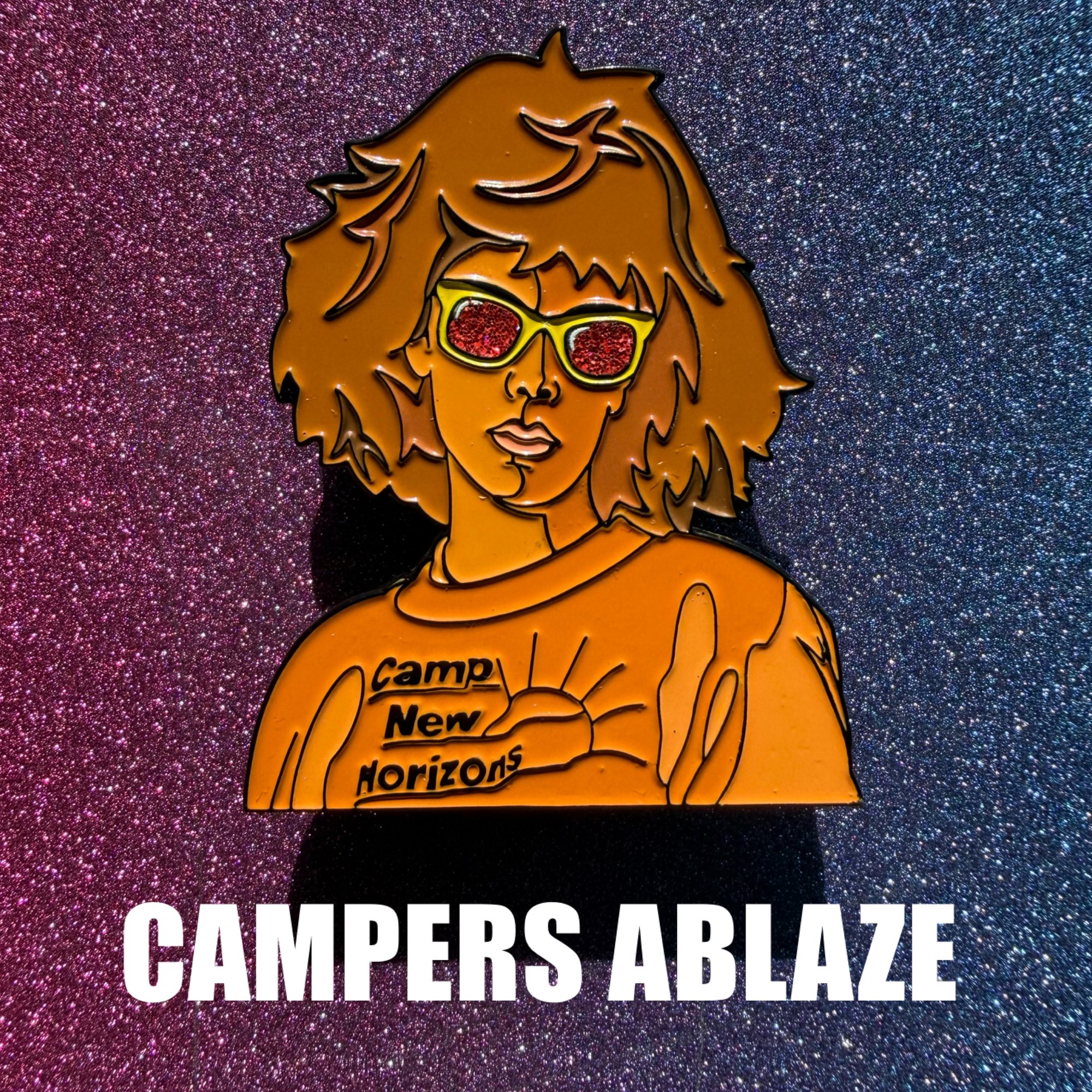 Campers Ablaze: Red glitter shades, black dyed metal.