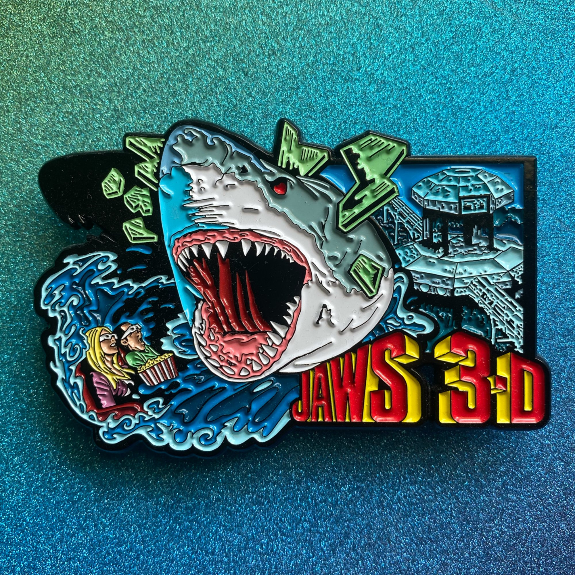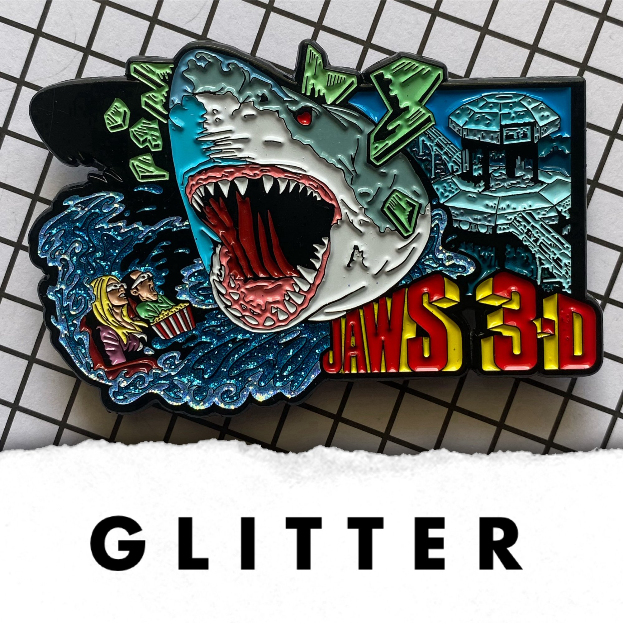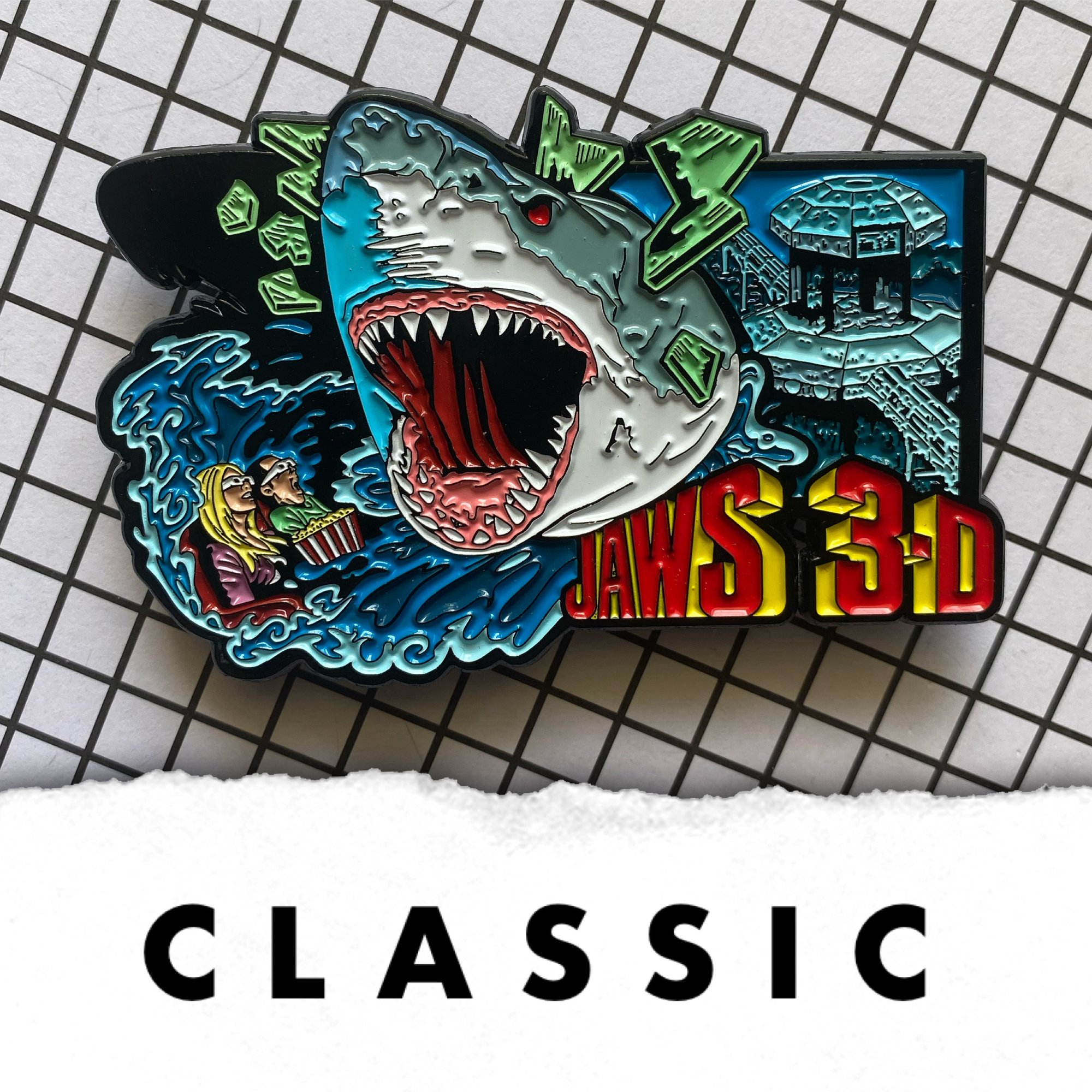 3.25” wide quad posted soft enamel pin. Pin design by Pinsploitation.