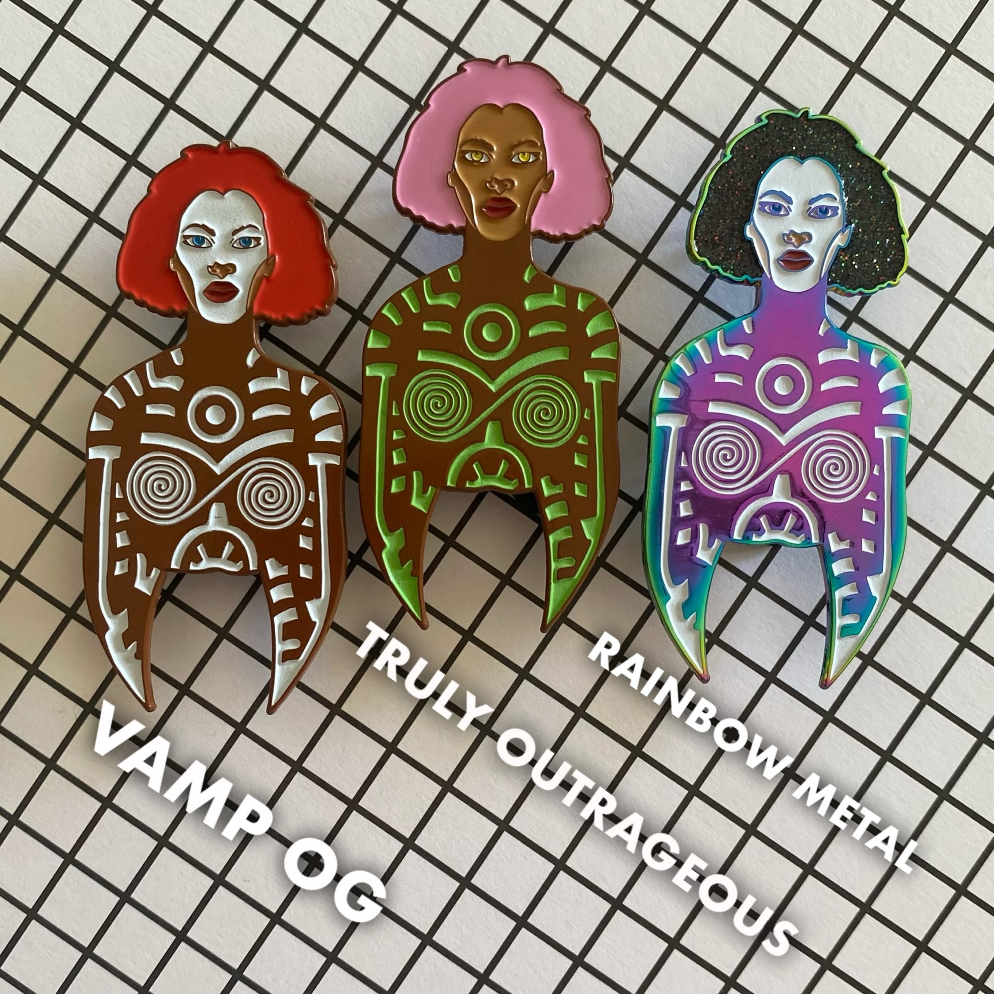 2.5”, double posted soft enamel pin. Design by Pinsploitation.